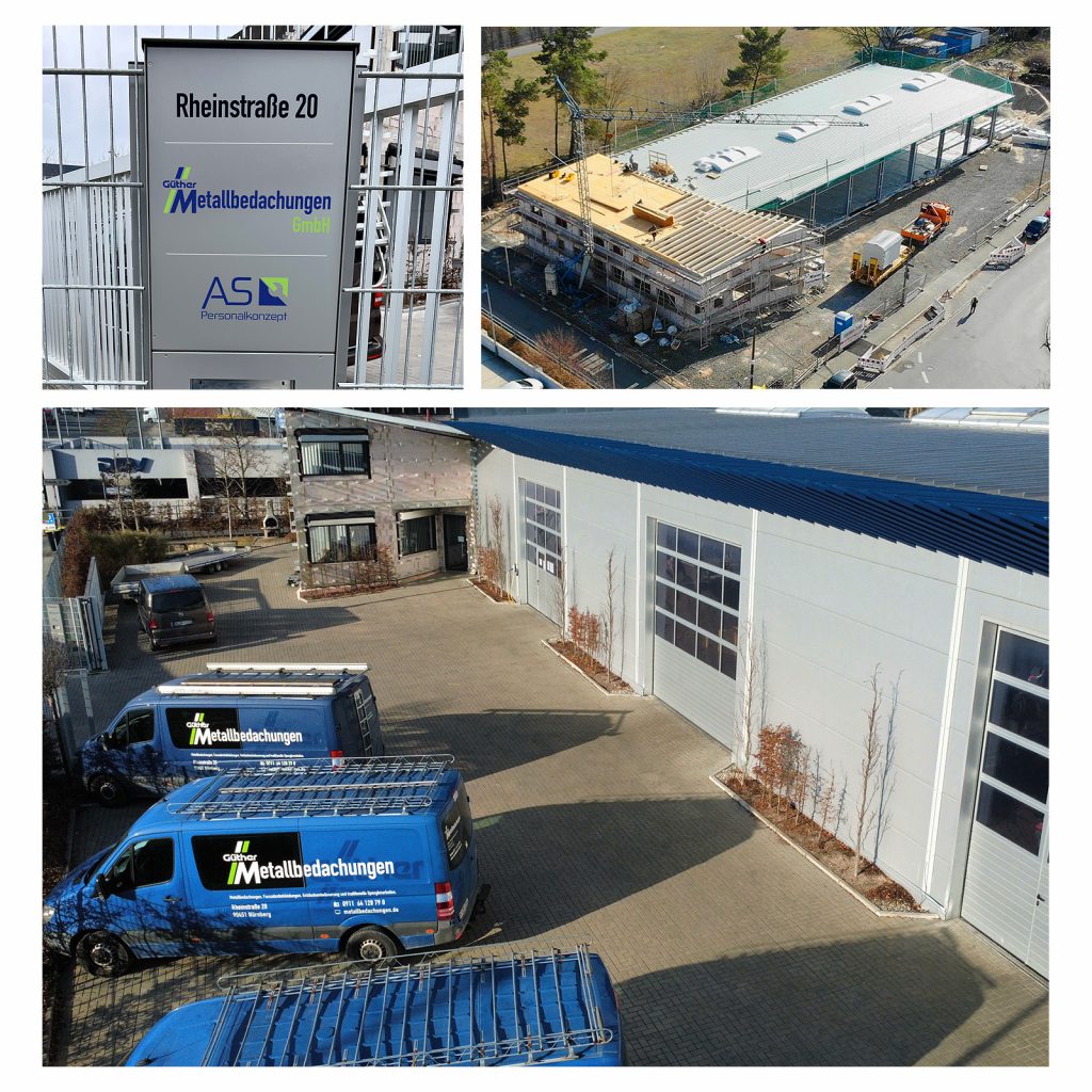 Seit 1987, dem Beginn von Güther Metallbedachungen, hat sich nicht nur unsere Mitarbeiterzahl vergrößert, sondern es sind auch immer größere und anspruchsvollere Bauvorhaben entstanden und abgewickelt worden. Der erneute Umzug 2021 des Unternehmen’s in die Rheinstrasse am Nürnberger Hafen erfolgte aufgrund von Bedarf größerer Lager- und Produktionshallen und besserer Verkehrsanbindung.